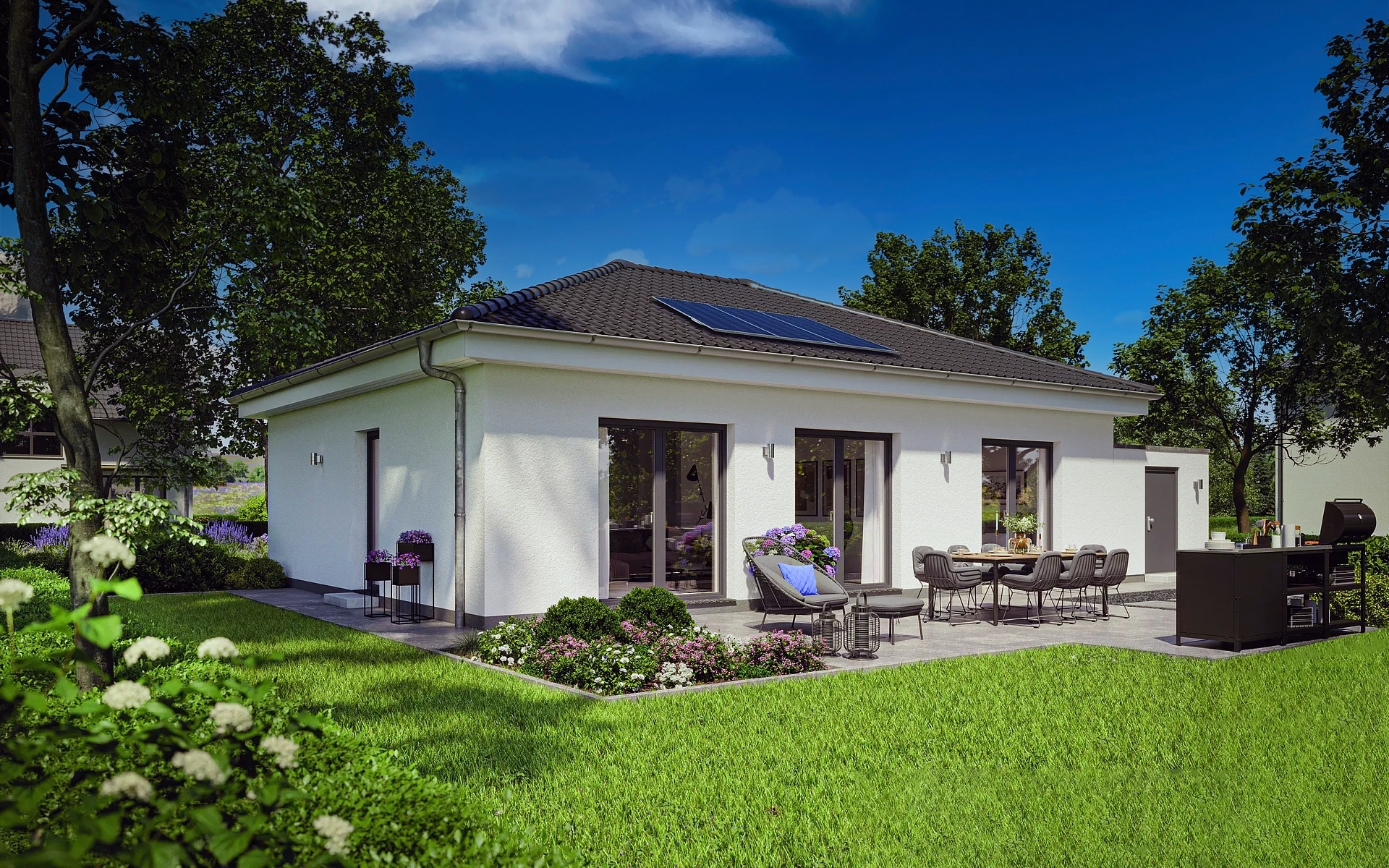 Model KM-104– dom koji vešto kombinuje sve praktične i udobne aspekte na 83 m² neto površine, odnosno 104,16 m² bruto površine, kako bi vam pružio život pun radosti i udobnosti. Čim uđete u kuću kroz hodnik, primetićete da se životni prostor koristi efikasno i optimalno. Hodnik nudi prostor za garderobu ili ugradni plakar. Odavde možete pristupiti i pomoćnoj prostoriji, koja se pokazuje kao prava prednost u svakodnevnom životu. Ovde ćete naći prostor za svoju mašinu za veš, mašinu za sušenje i još mnogo toga, tako da ćete od sada biti dobro pozicionirani kada je u pitanju organizacija domaćinstva. Put se nastavlja u otvoreni dnevni boravak i trpezariju, koji čini srce čvrste kuće. Ovde se kuvanje, jelo i opuštanje stapaju u harmoničan suživot. Soba nudi dovoljno prostora za ostrvo za kuvanje, koje pripremanje obroka ne samo da čini zadovoljstvom, već služi i kao udobno mesto za sastanke vaših najmilijih.